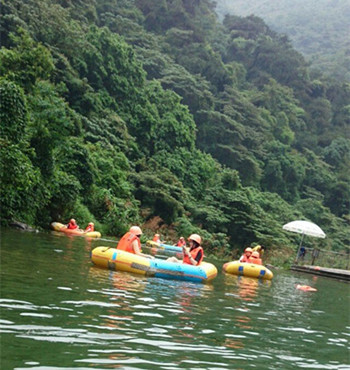 探險(xiǎn)結(jié)束之后,下午則是令人期待的漂流。不過很遺憾并沒有全員一起漂流,有一些人沒有過去。我們在山谷的上游登上皮劃艇,每一組男女搭配。不過有些不愿意同男生一起戲水的女生就自己組隊(duì),不過在后來的陌生人水戰(zhàn)中被噴的挺慘。宋導(dǎo)倒是樂意做一個(gè)合格的觀眾。不過看到有些人被“敵人”攻擊的太慘,宋導(dǎo)也看不下去,于是并不吝嗇教她們左邊劃幾下,右邊劃幾下,把皮劃艇劃走,否則誰也不知道她們要怎么從角落里面出來。