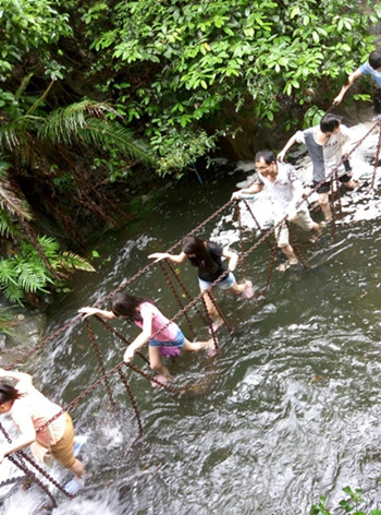 某些女生一馬當(dāng)先,搶在前面,讓同行的男生也為之汗顏。在這條探險(xiǎn)的路上,水潭瀑布、鐵索云梯、浮橋石丘接連不斷,樹木蒼翠蔥綠,風(fēng)景秀美。果真是不虛此行。無論平時(shí)是喜歡安靜的還是活潑的,在野外則充分展現(xiàn)了大家火力全開的精神風(fēng)貌。不僅增加的了大家之間的互相了解,更展現(xiàn)了大家團(tuán)結(jié)一心的企業(yè)凝聚力。