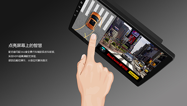 觸控——產(chǎn)品采用了10.1寸超大IPS屏幕以及G+G觸摸屏,可實(shí)現(xiàn)觸控操作;在觸控指令下,在行車過(guò)程中可根據(jù)車主自主需求,直接通過(guò)觸摸屏幕切換視角畫(huà)面, 無(wú)需再通過(guò)打轉(zhuǎn)向燈或是掛倒擋等來(lái)被動(dòng)切換視角畫(huà)面,除此之外,還可實(shí)現(xiàn)設(shè)置、記錄回放等眾多便捷操控,更智能、更便捷!