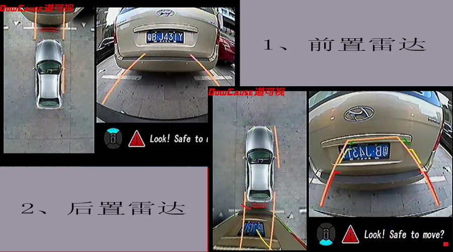 道可視360度全景行車輔助系統(tǒng)增加了全新的前置/后置雷達(可視倒車雷達),當靠近其他車輛或障礙物時,在車載DVD上可以清楚的看到雷達提示,有效的避免發(fā)生碰撞。