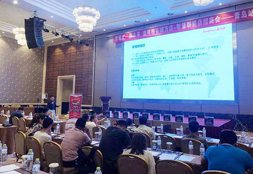 會議直奔主題,就目前火爆的“智慧聯盟店”,道可視區(qū)域經理趙波進行了重點介紹,他從市場體系、加盟方案、銷售模式和加盟優(yōu)勢四個維度進行了詳細宣講,引起現場終端門店的極大興趣。