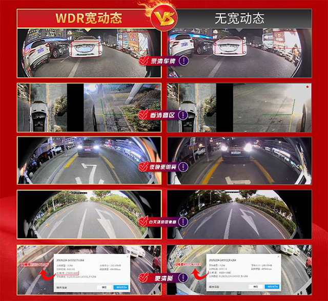 道可視4顆攝像頭均植入WDR算法,在白天或是夜間復(fù)雜強(qiáng)光環(huán)境下,有效抑制強(qiáng)光,解決夜間強(qiáng)光環(huán)境下的炫光問(wèn)題,避免汽車大燈照射下造成影像顯示,以及影像記錄“一團(tuán)白色”的尷尬,能夠清晰的記錄及看清車牌和路況。