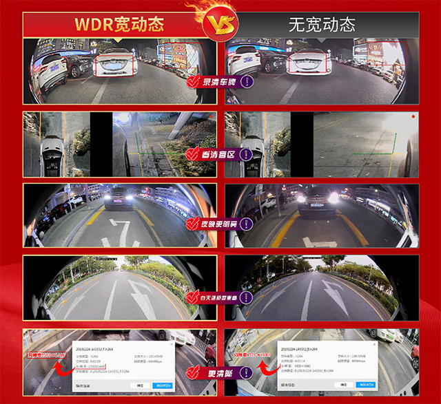 在道可視360全景行車輔助系統(tǒng)的實際路測中,我們看到在同樣的環(huán)境下,傳統(tǒng)的360°全景所記錄的畫面已是白茫茫一片,道可視360°全景行車輔助系統(tǒng)呈現(xiàn)的畫面清晰,能夠更好地還原真實畫面,車牌也能清晰可見。這與無寬動態(tài)的360°全景有著本質(zhì)的區(qū)別。